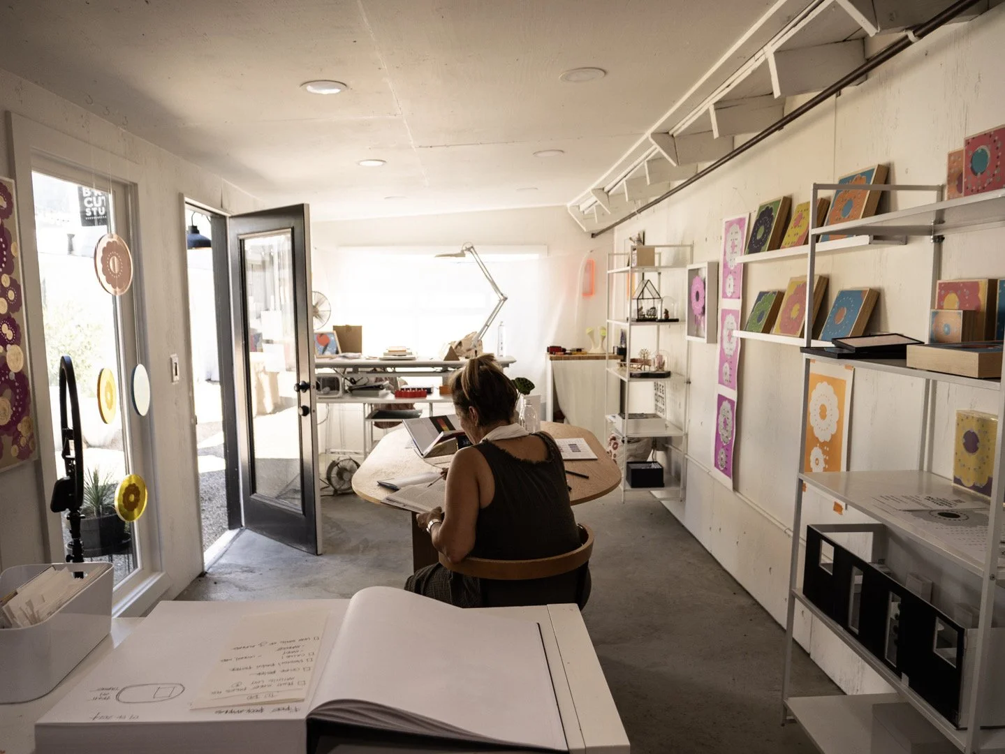 Bree Cutts is a talented local designer and illustrator known for her exquisite screen prints and story-based patterns. Her work combines digital production and hand-printing techniques to create unique, captivating pieces that tell compelling stories. Bree is thrilled to use The Ranch as her workspace, where she will continue to develop her art and bring her narrative-driven designs to life for the greater Bay Area community.